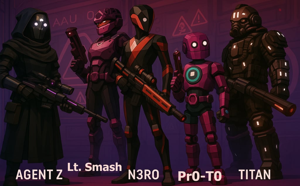 In the neon ruins of a world overrun by Zombots, five specialists rise to reclaim what’s left of humanity. Each brings their own weapon, mindset, and method of survival to the fight — from Titan’s brute force to N3ro’s silent precision. In Dead Dock Protocol, these agents aren’t just characters; they’re archetypes of resistance forged in chrome, blood, and circuitry. This feature introduces the first five playable operatives of the DDP Taskforce — their strengths, weapons, and philosophies that define the tone of the game’s opening campaign. Discover how each Agent’s unique combat profile reshapes the battlefield, and decide who you’ll become when the Docks fall.