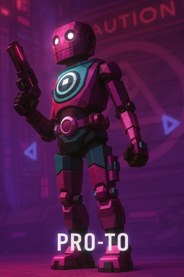 An experimental android prototype rebuilt from scavenged D0K tech, Pr0-T0 is as efficient as it is enigmatic. It runs on adaptive algorithms that learn from each encounter, adjusting combat style and tempo mid-fight. Quick to recharge and difficult to wear down, Pr0-T0 acts as the team’s stabilizer—always consistent, always calculating. Its precision pistol work turns every engagement into a data-driven execution.
